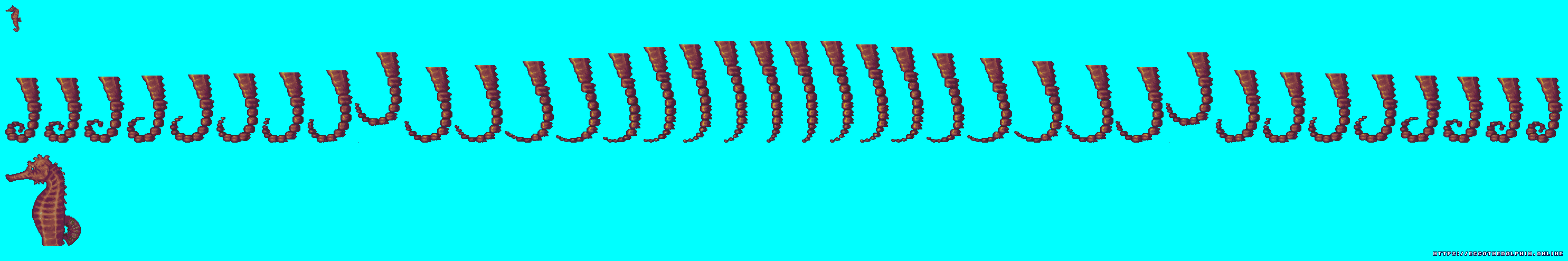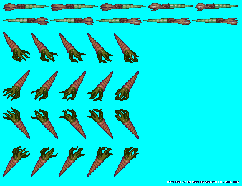 A collection of sprites from Ecco the Dolphin PC. These sprite sheets were extracted from the game itself using tools created from our reverse engineering efforts. The tools are capable of decoding and reading the various Ecco PC sprite and level formats. Our sprites are free to distribute as long as credit is given to https://eccoonline.net