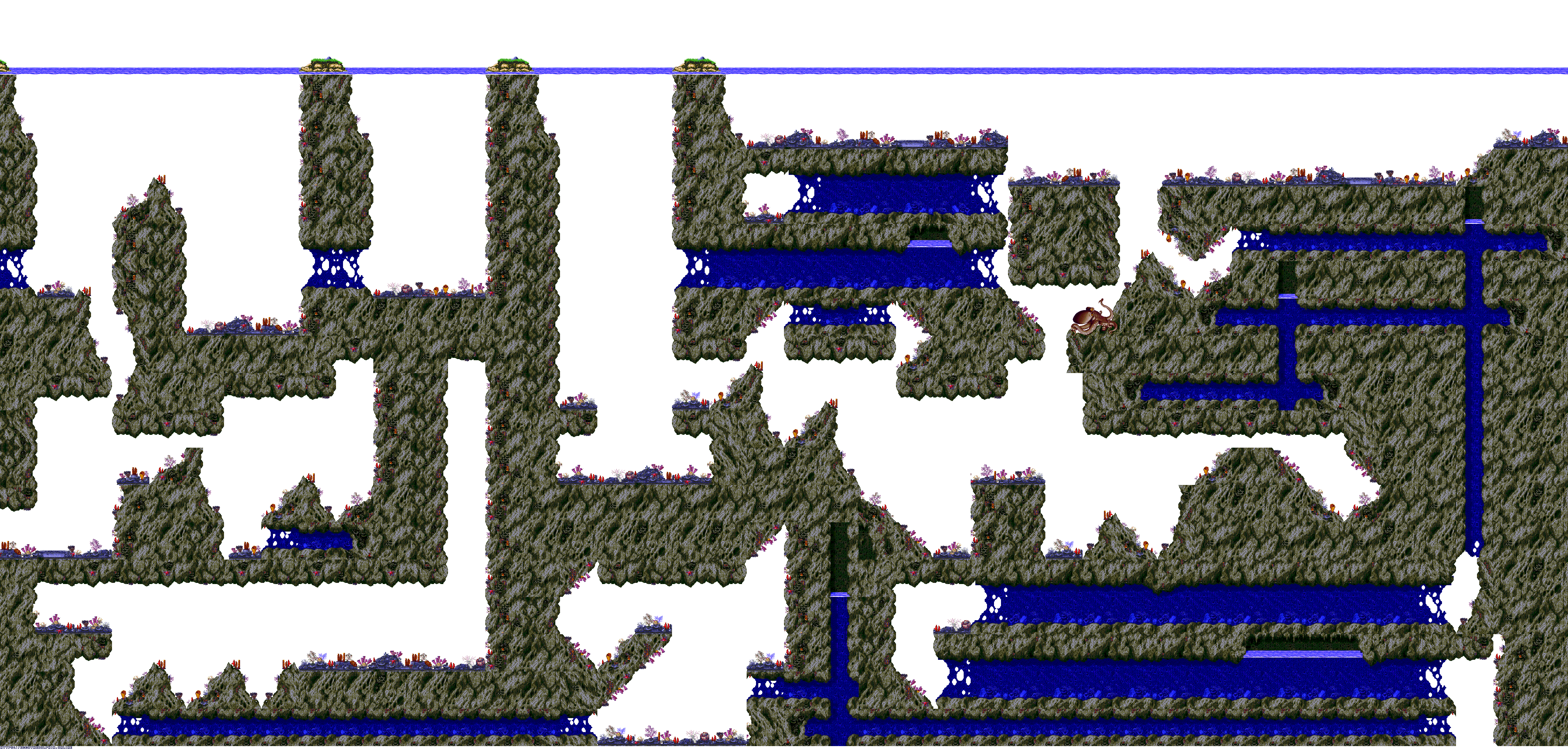 A collection of level maps from Ecco the Dolphin for the Sega Genesis/Mega Drive. These level maps were extracted from the game itself using tools created from our reverse engineering efforts. The tools are capable of decoding and reading Mega Drive bitmaps, and various Ecco the Dolphin sprite and level formats. Our level maps are free to distribute as long as credit is given to https://eccoonline.net