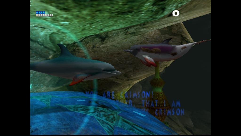 There are no message glyphs on any of the levels in this build of the game, but there are much more dolphins which seem to serve their function at this time, delivering hints on the gameplay and the occasional hilarious placeholder messages.