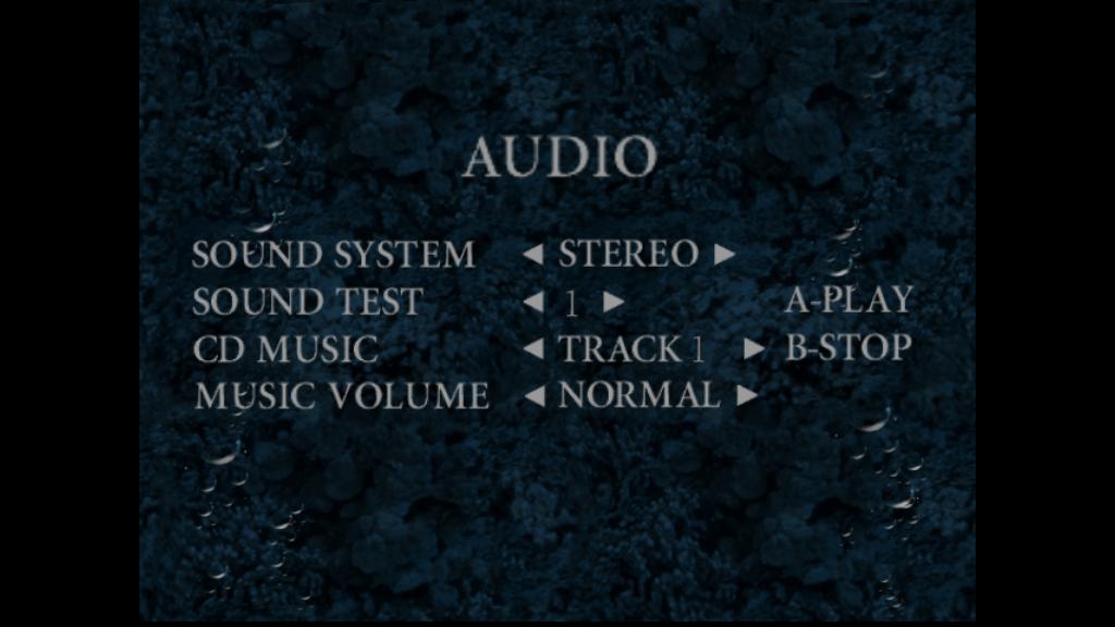 There is no music in this build with the files for it completely missing. My guess is that either the music has not been done by this stage or the plans may have been to make it play as CD audio because in the Options there is a Sound menu which includes a Sound Test feature, referring to the music as CD Tracks: