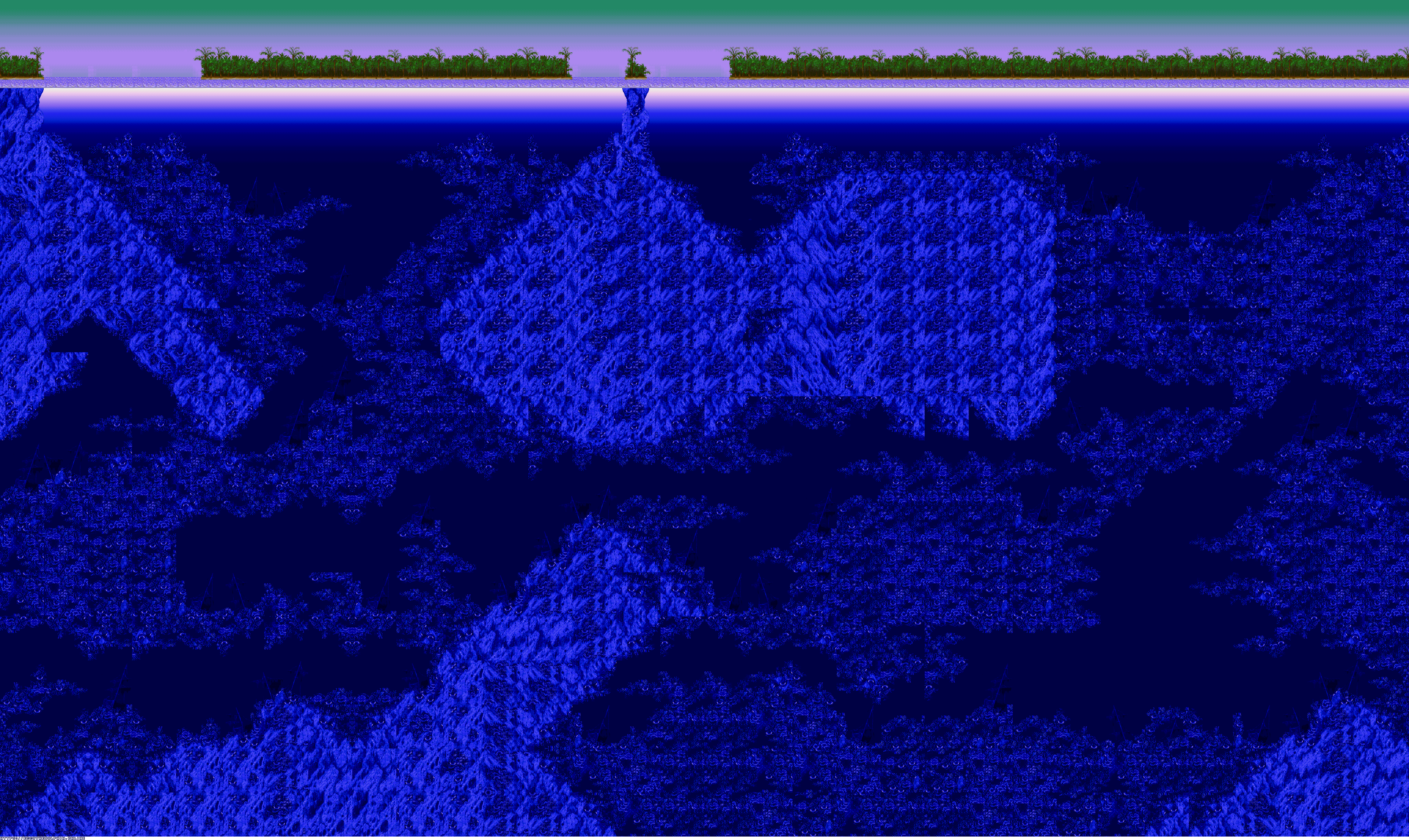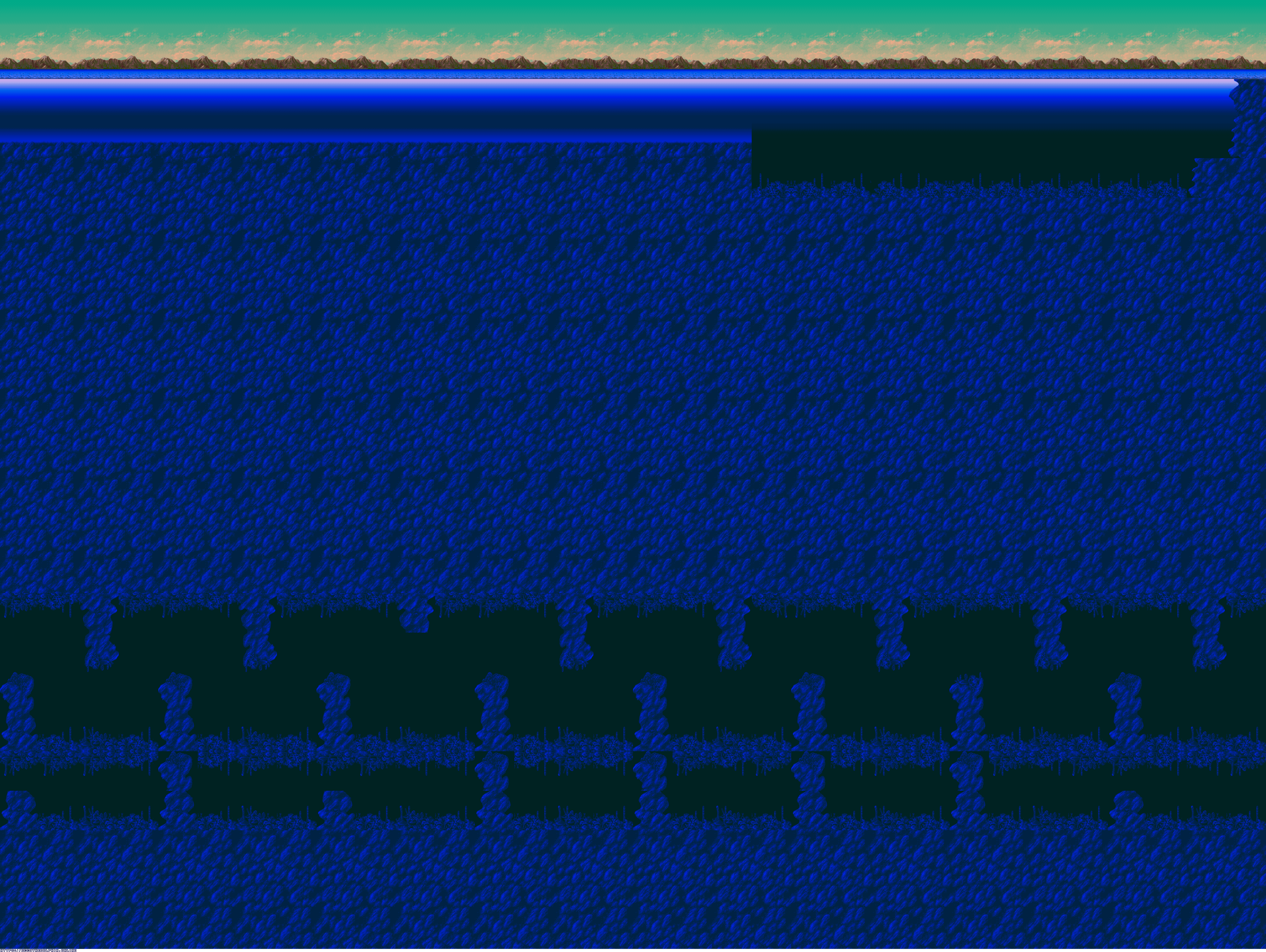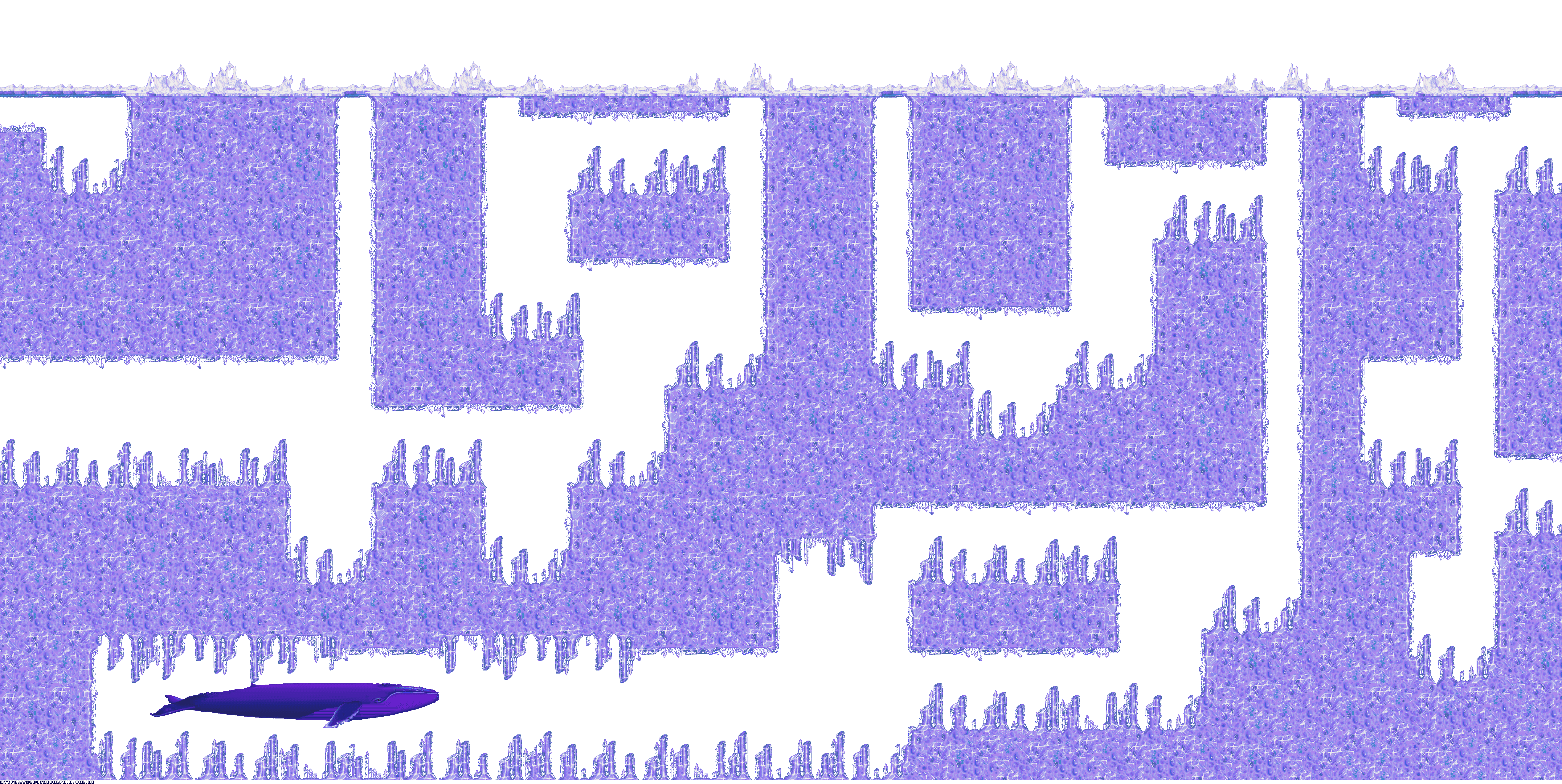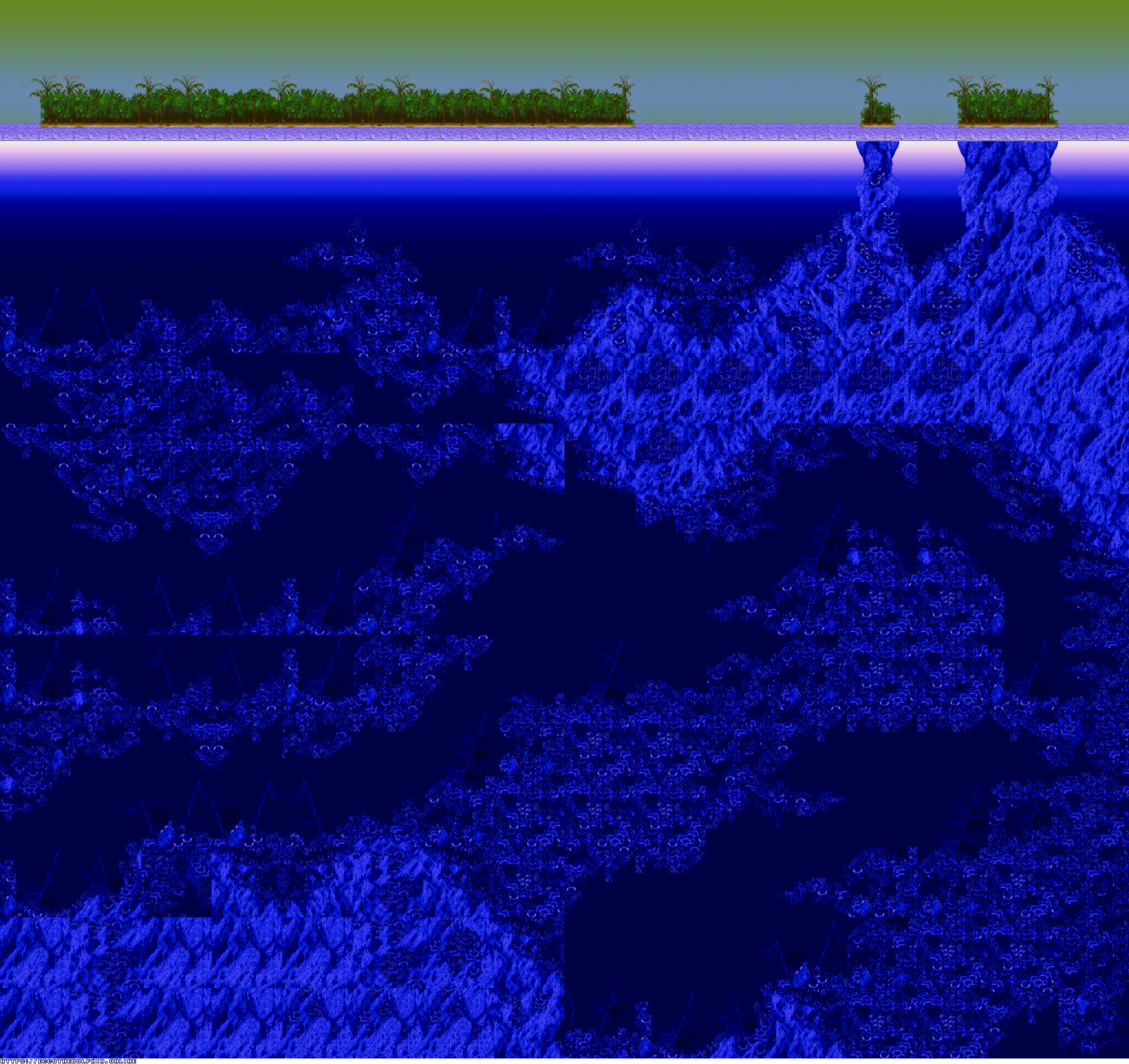 A collection of level maps from Ecco the Dolphin PC. This version of the game is unique for its high resolution mode. For that mode the overall graphics were doubled in size and partially redrawn. There is no parallax effect for backgrounds while in high resolution mode. Instead newer backgrounds were created to fit the size of the stage.