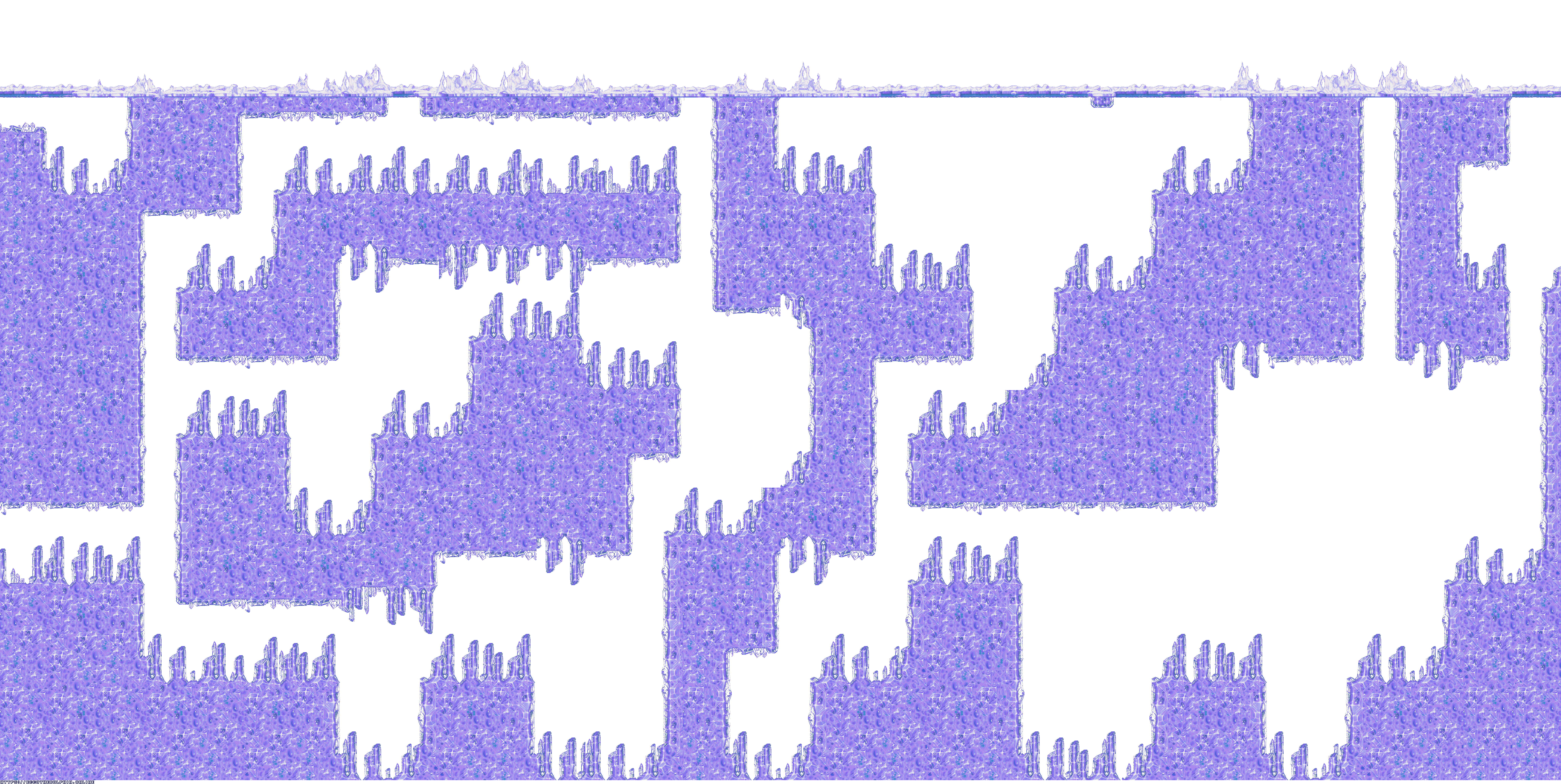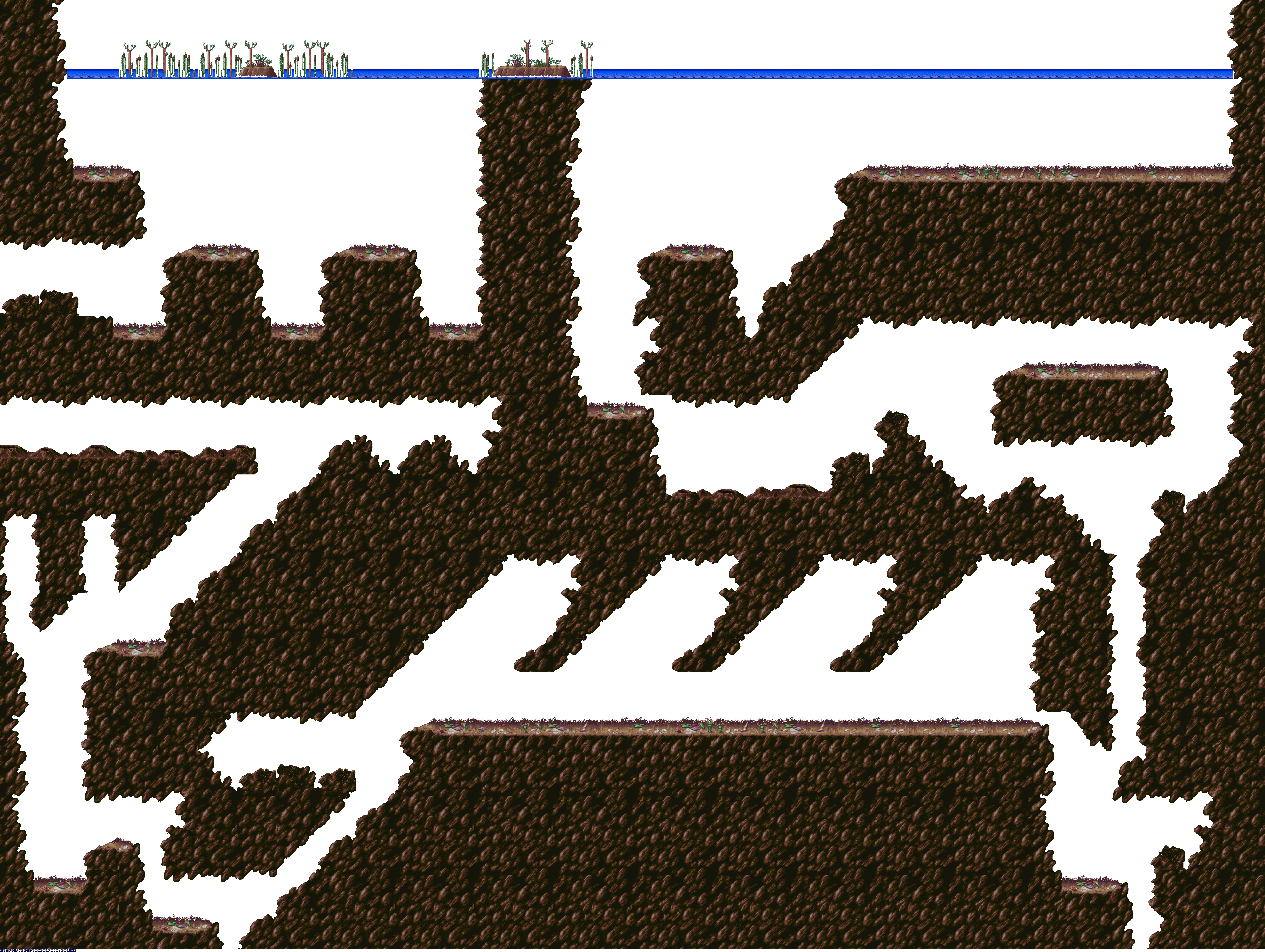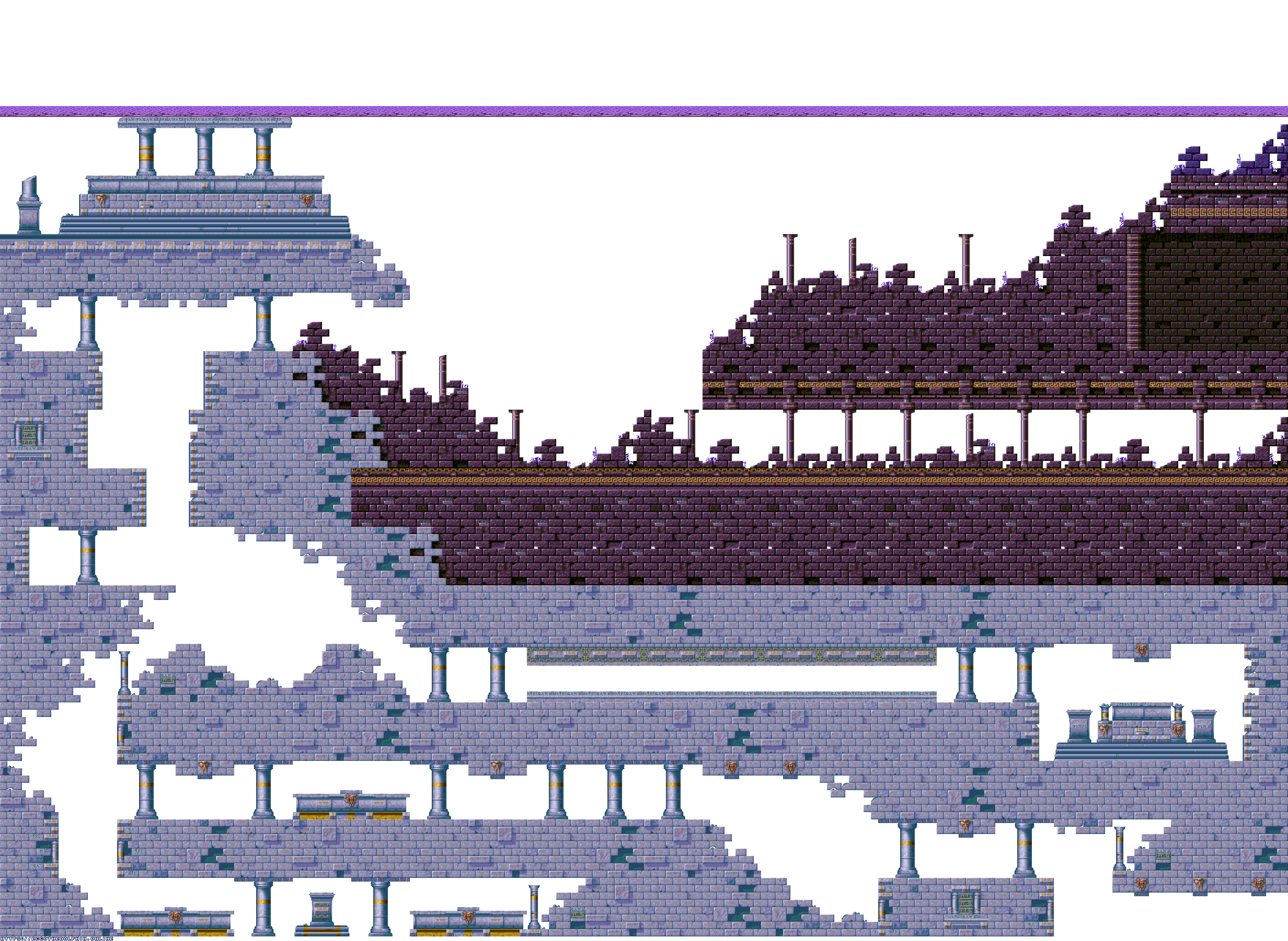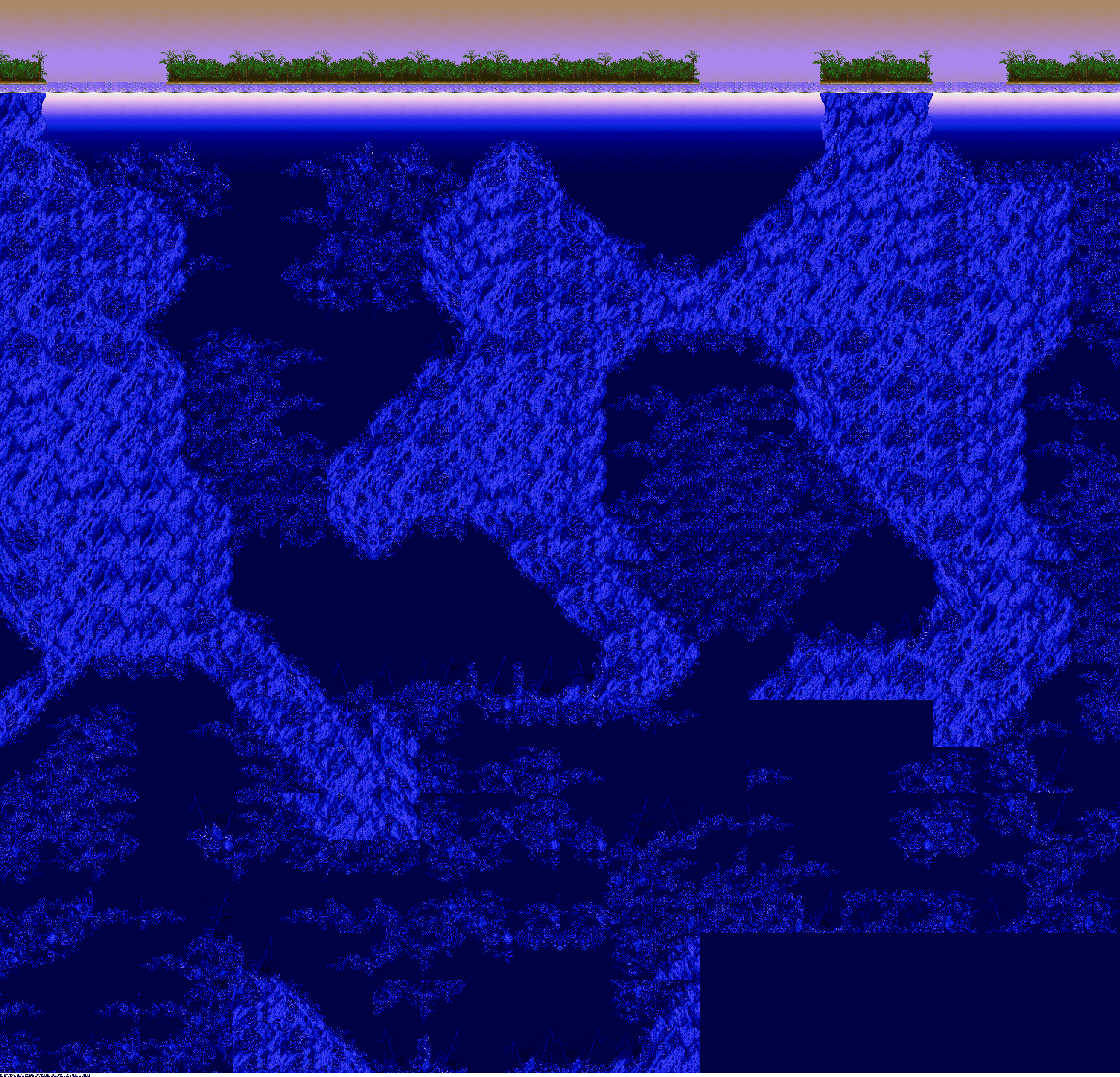 A collection of level maps from Ecco the Dolphin PC. This version of the game is unique for its high resolution mode. For that mode the overall graphics were doubled in size and partially redrawn. There is no parallax effect for backgrounds while in high resolution mode. Instead newer backgrounds were created to fit the size of the stage.