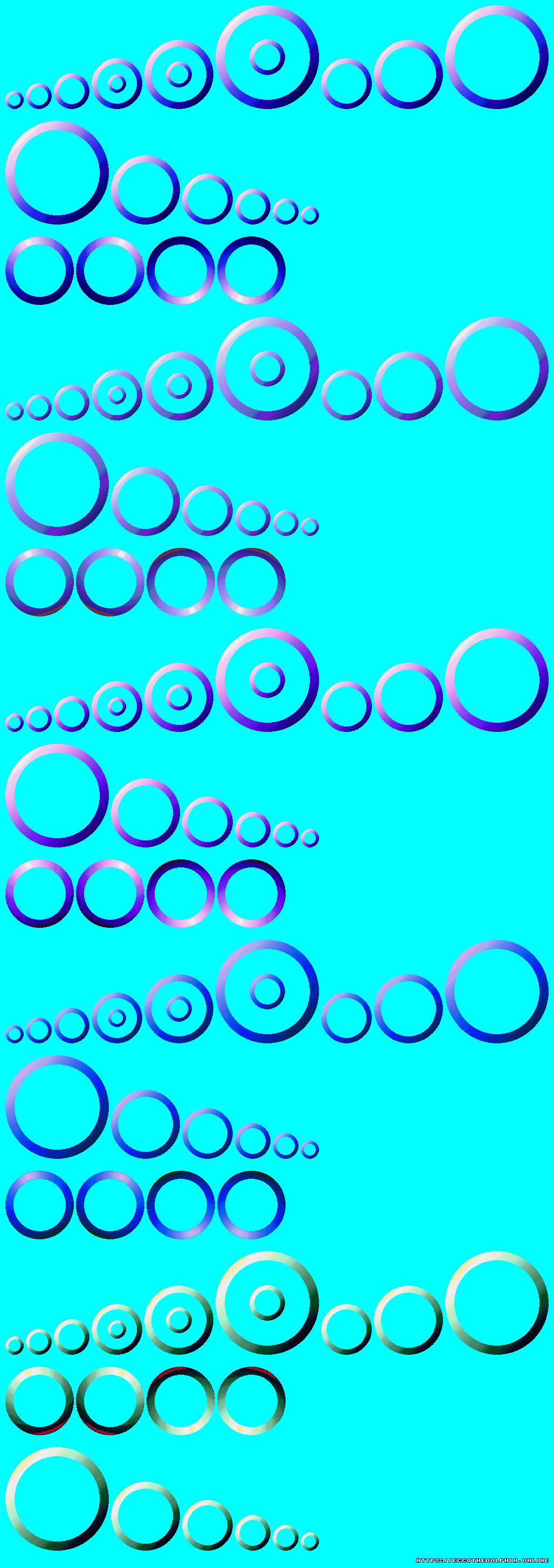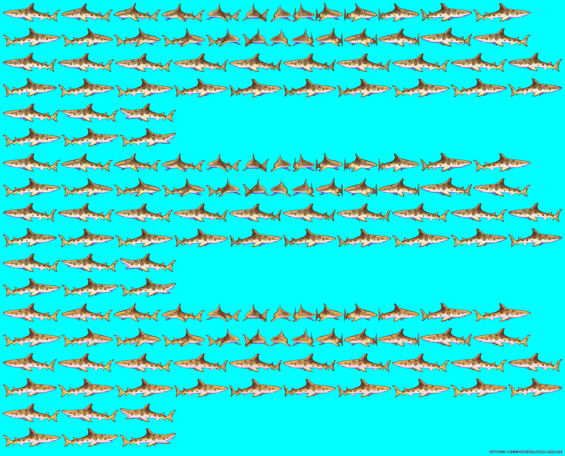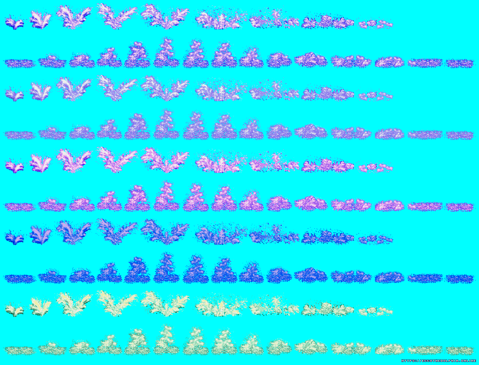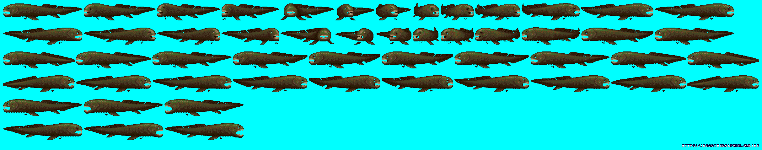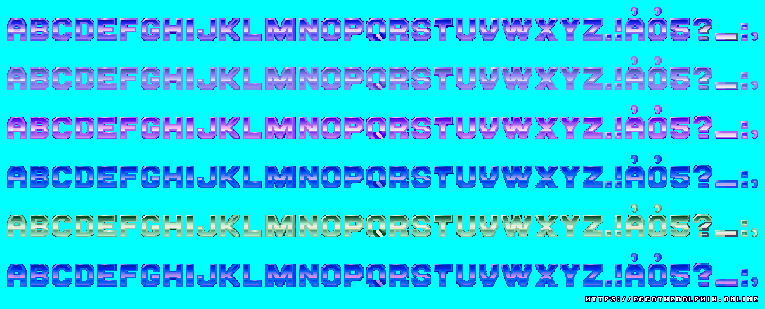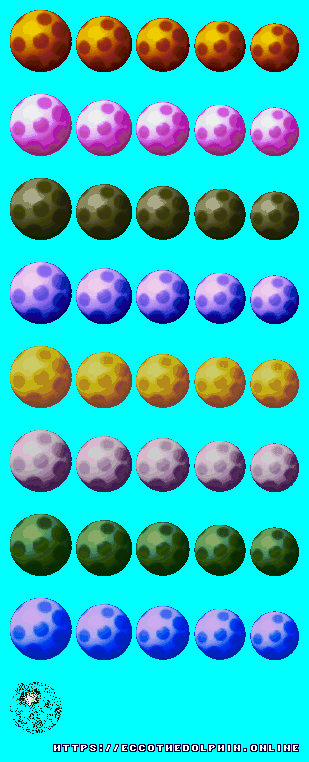A collection of sprites from Ecco the Dolphin PC. These sprite sheets were extracted from the game itself using tools created from our reverse engineering efforts. The tools are capable of decoding and reading the various Ecco PC sprite and level formats. Our sprites are free to distribute as long as credit is given to https://eccoonline.net