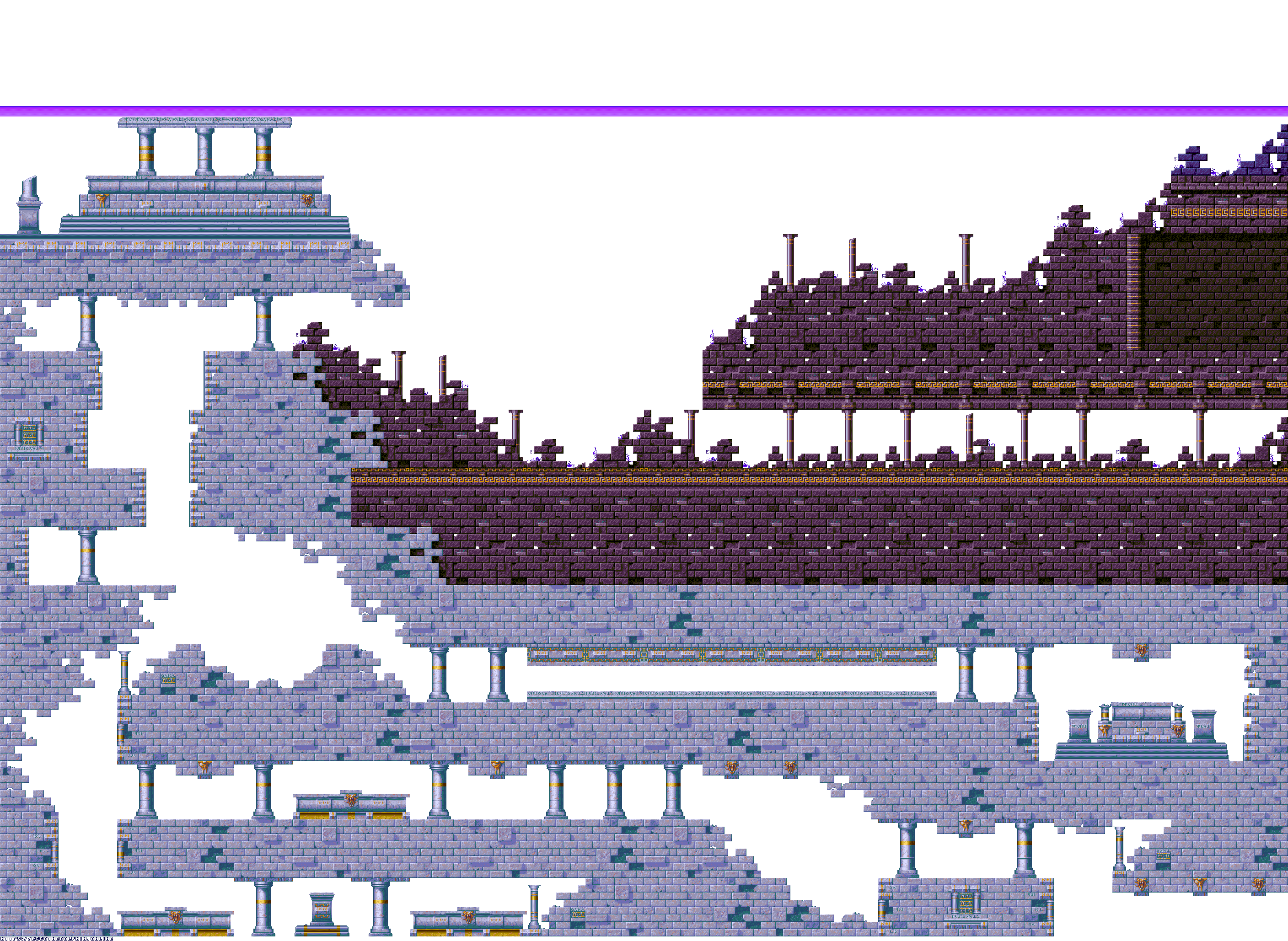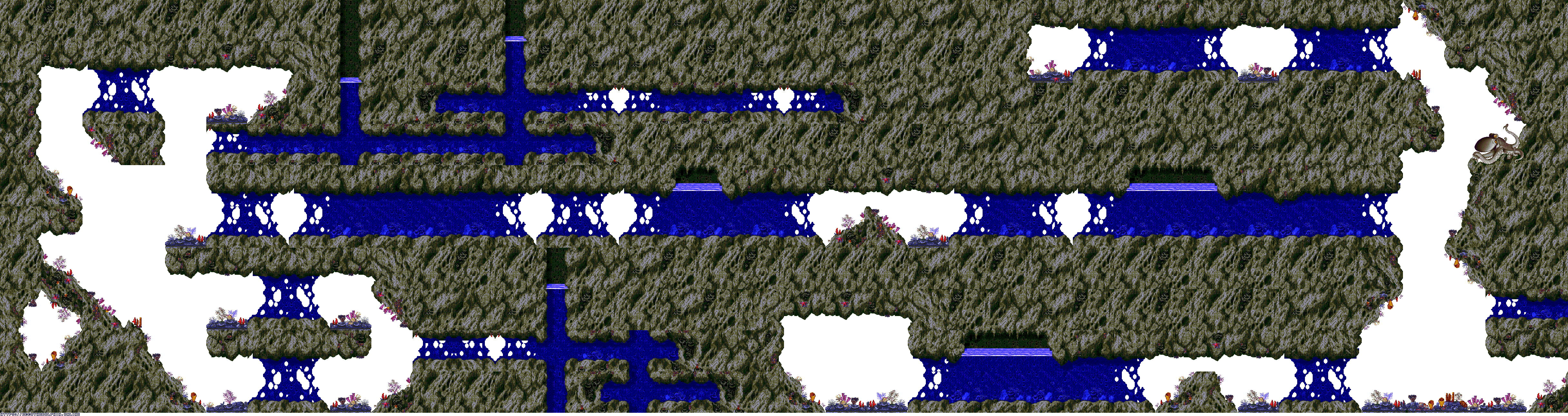 A collection of level maps from Ecco the Dolphin for the Sega Genesis/Mega Drive. These level maps were extracted from the game itself using tools created from our reverse engineering efforts. The tools are capable of decoding and reading Mega Drive bitmaps, and various Ecco the Dolphin sprite and level formats. Our level maps are free to distribute as long as credit is given to https://eccoonline.net