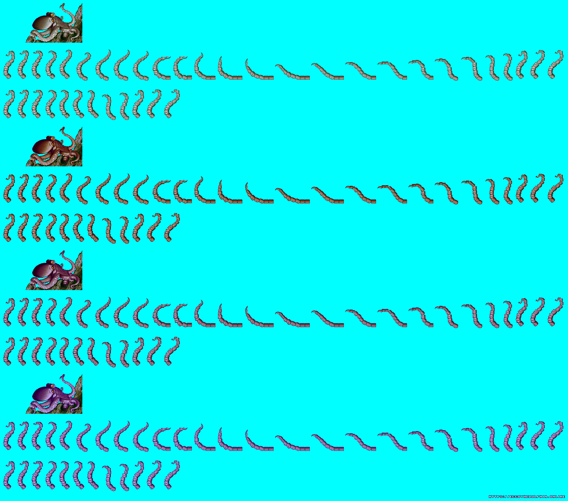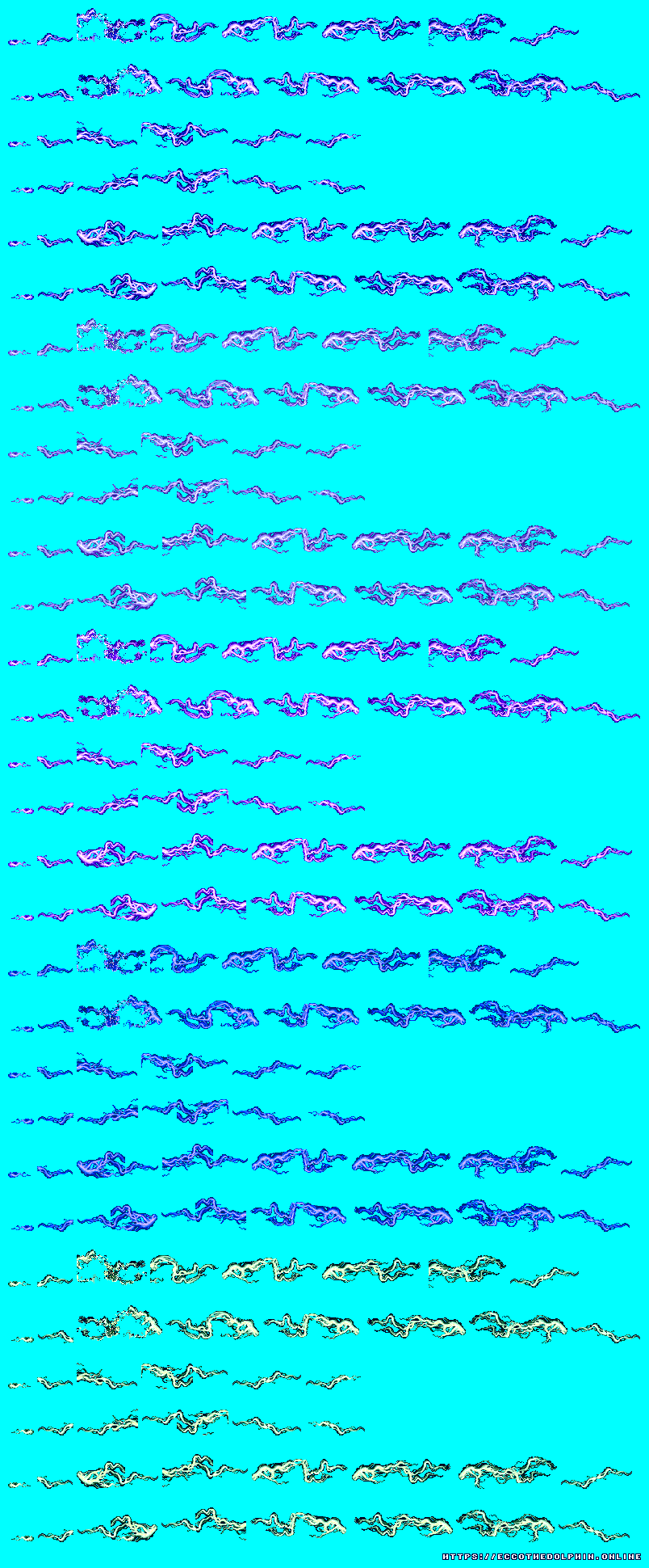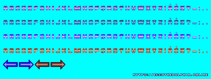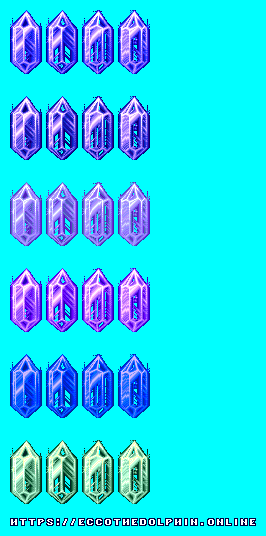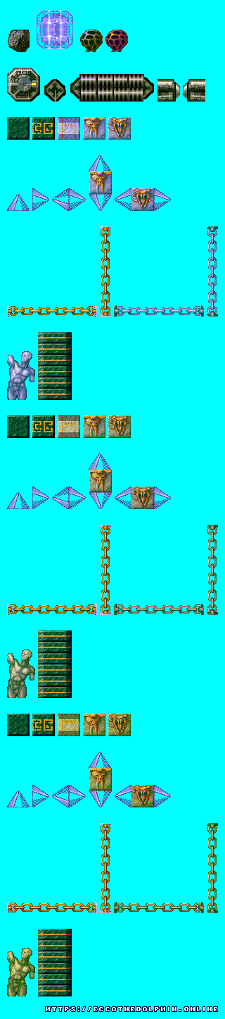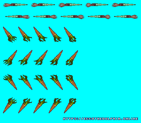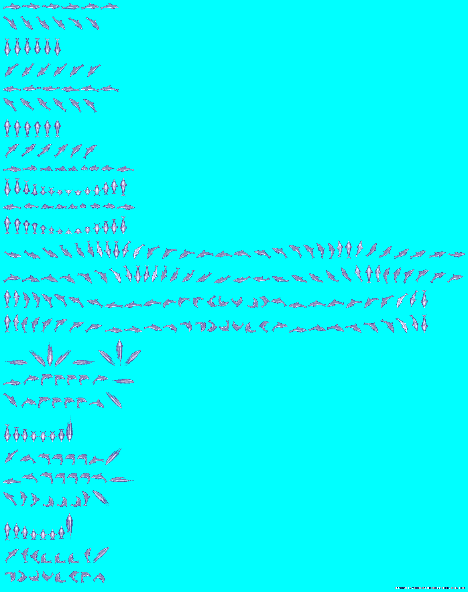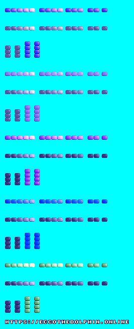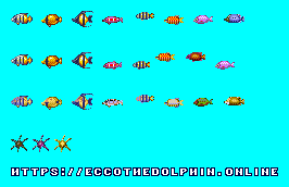 A collection of sprite sheets from Ecco the Dolphin for the Sega Genesis/Mega Drive. These sprite sheets were extracted from the game itself using tools created from our reverse engineering efforts. The tools are capable of decoding and reading Mega Drive bitmaps, and various Ecco the Dolphin sprite and level formats. Our sprite sheets are free to distribute as long as credit is given to https://eccoonline.net