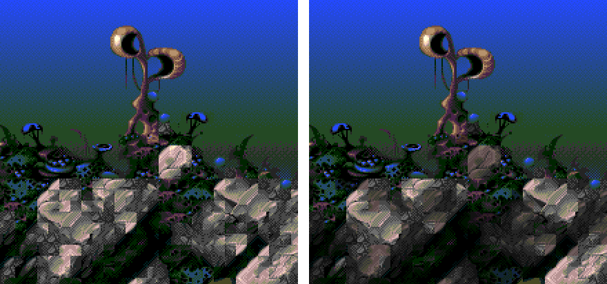 Some stages, such as Trellia's Bay use the Mega Drive's shadow effect to push the color palette beyond its limit.