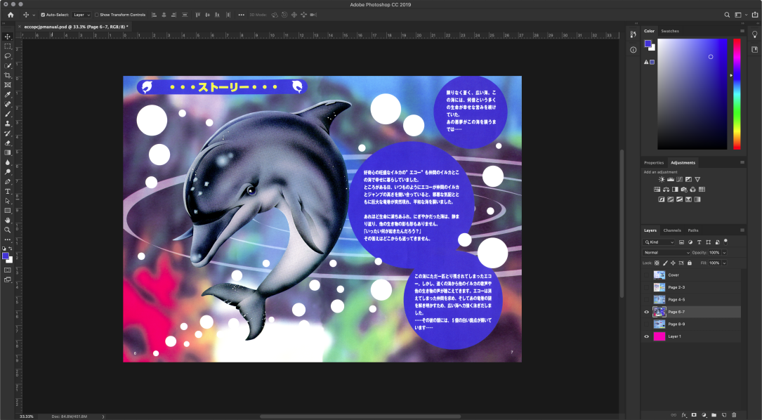 At Ecco the Dolphin Online we are committed to preserving resources from the Ecco the Dolphin series. As part of our preservation efforts we secure rare items and bring them back to their highest quality. We restore items digitally by removing unwanted artifacts such as dust, scratches, staples and folds. In some cases our specialists will patch together several scanned items to create a single image. This is usually done with booklets that contain artwork that span several pages. We have also patched together large folded posters that had to be scanned in sections.