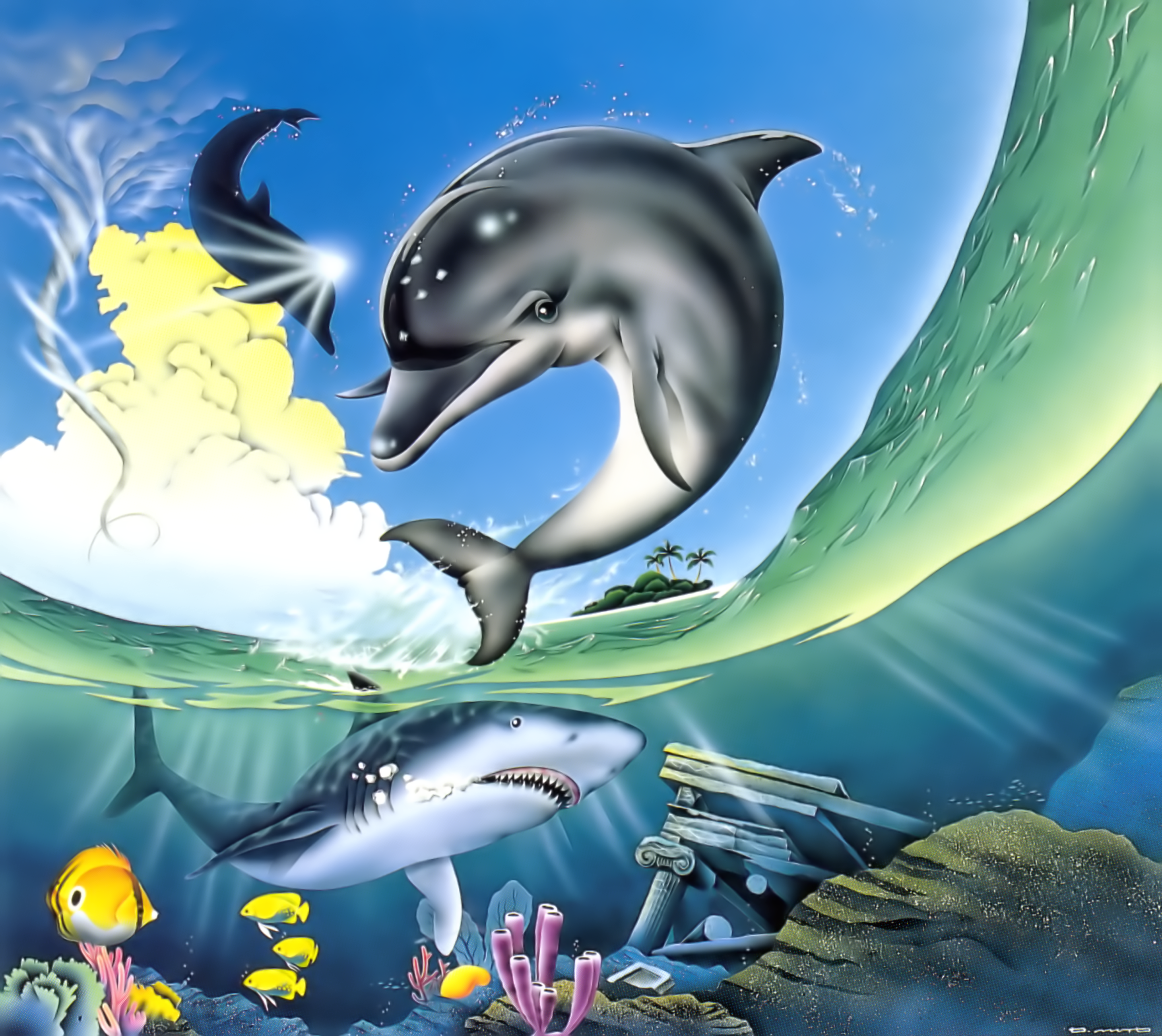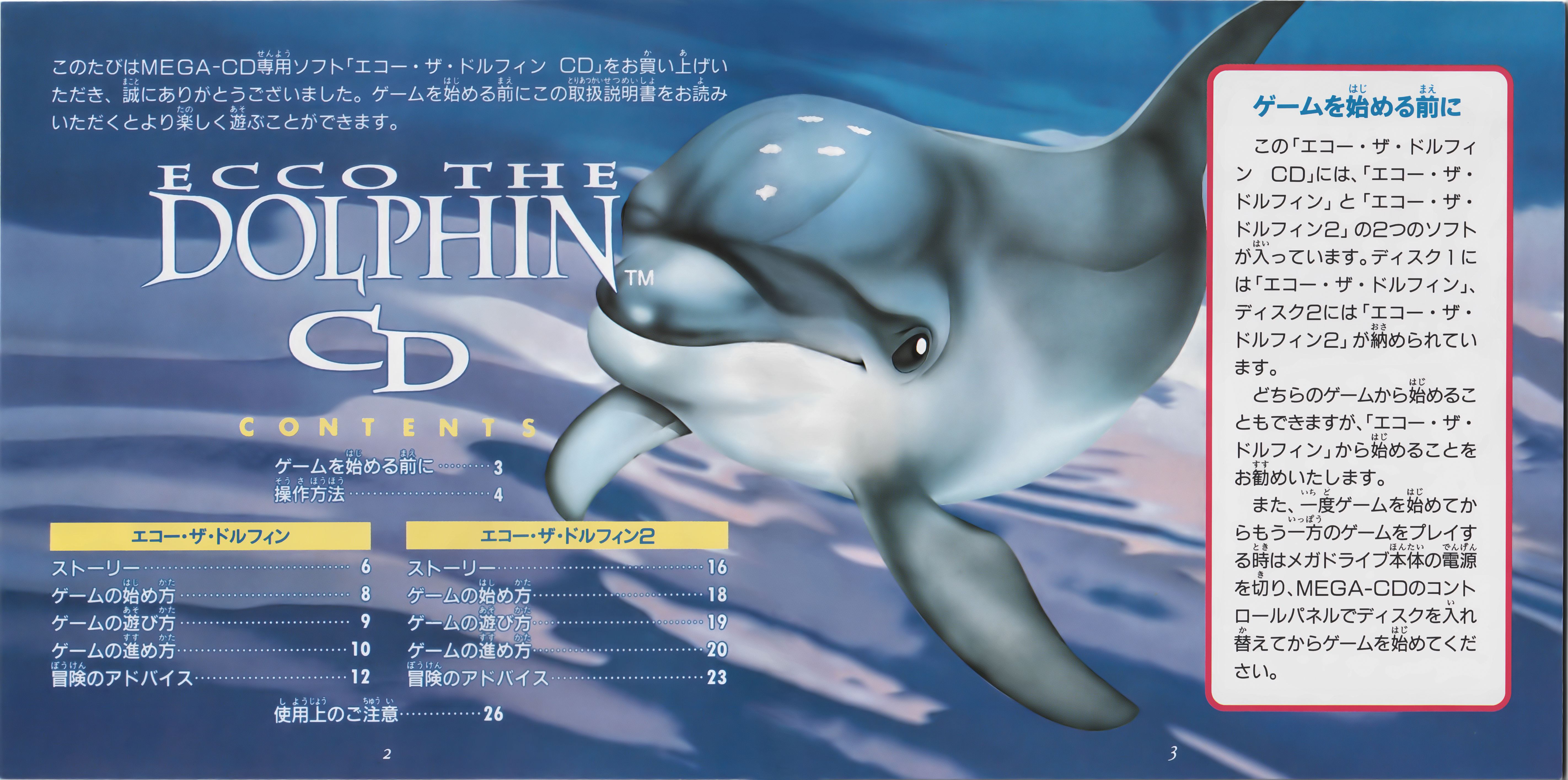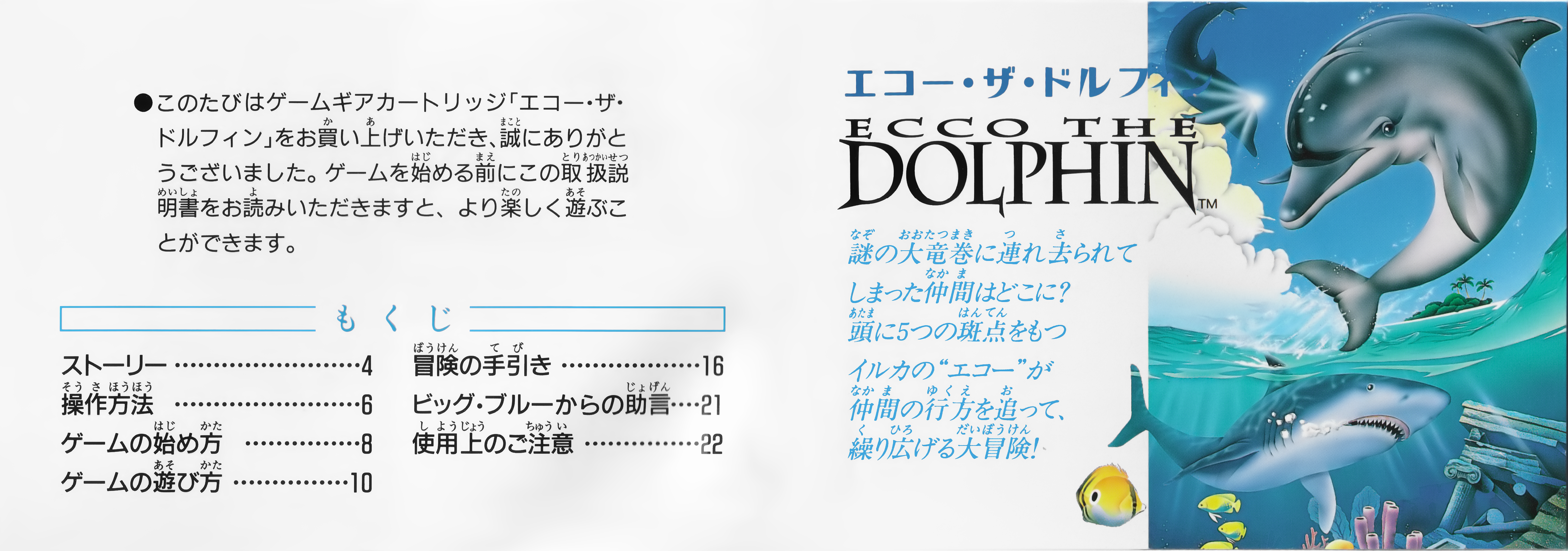 Tonurics patched together scans from the Ecco the Dolphin Boxed Set and refined the resulting image. Callyfin adds the finishing touch of combining it with the box end.
